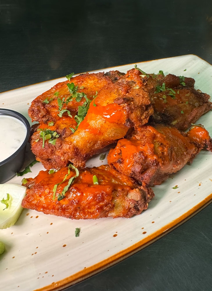 8-piece wings tossed in spicy wing sauce served with celery & ranch dressing